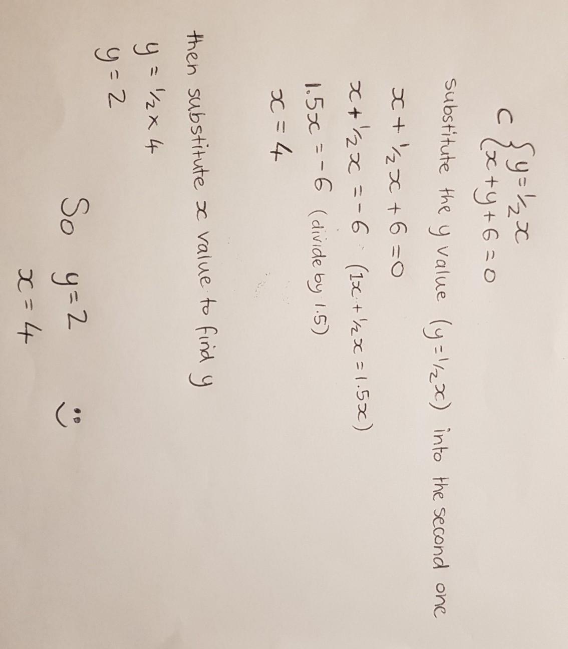 To find the value of x you substitute the y value into the second equation