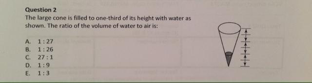 I’m going to say E because the amount of water filled is one third and 1:3 is one third