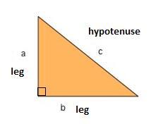 A right triangle consists of two legs and a hypotenuse. The two legs meet at a 90° angle and the hypotenuse is the longest side of the right triangle and is the side opposite the right angle.