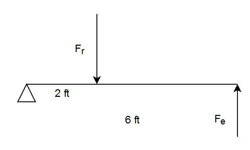 M_e=M_r\\\Rightarrow 6F_e=2F_r\\\Rightarrow F_e=\dfrac{2F_r}{6}\\\Rightarrow F_e=\dfrac{2\times 150}{6}\\\Rightarrow F_e=50\ \text{lb}