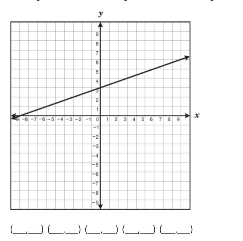 Ordered pairs which lie on the given line (-9, 0), (0, 3), (3, 4), (6, 5) and (9, 6).