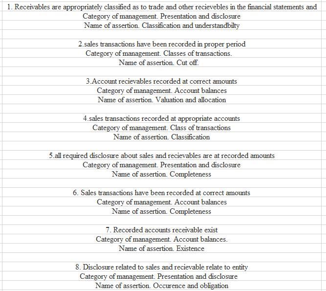 2&3) The assertion classes and the name of assertion for each of the assertions made by the by the management