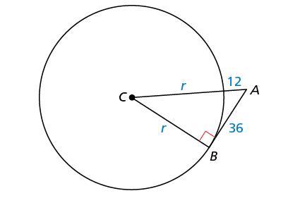 In the diagram, point B is a point of tangency. Find the radius r of