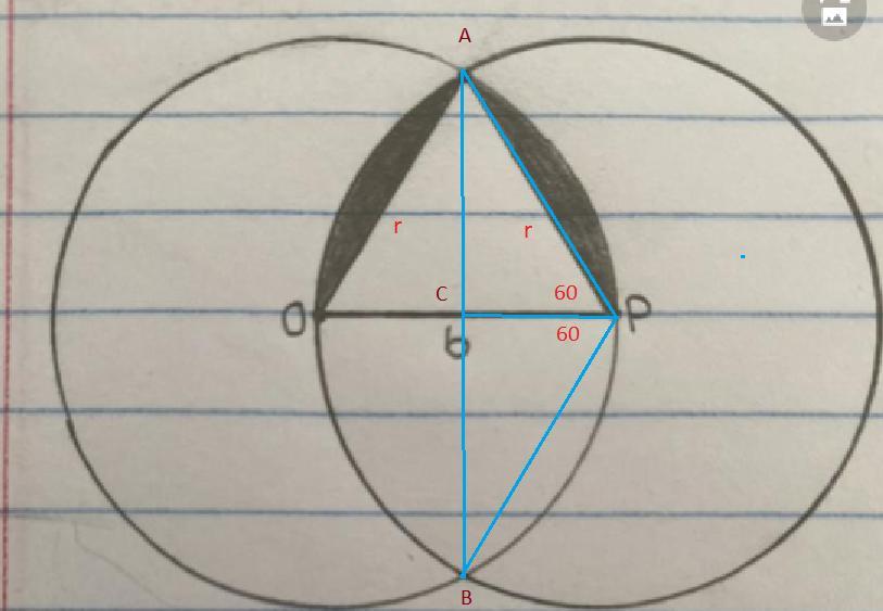 r=radius (OA and PA) of each circle