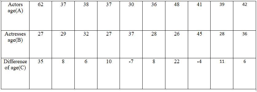 Kindly refer to the Table for the difference between the Actors and Actress's age.