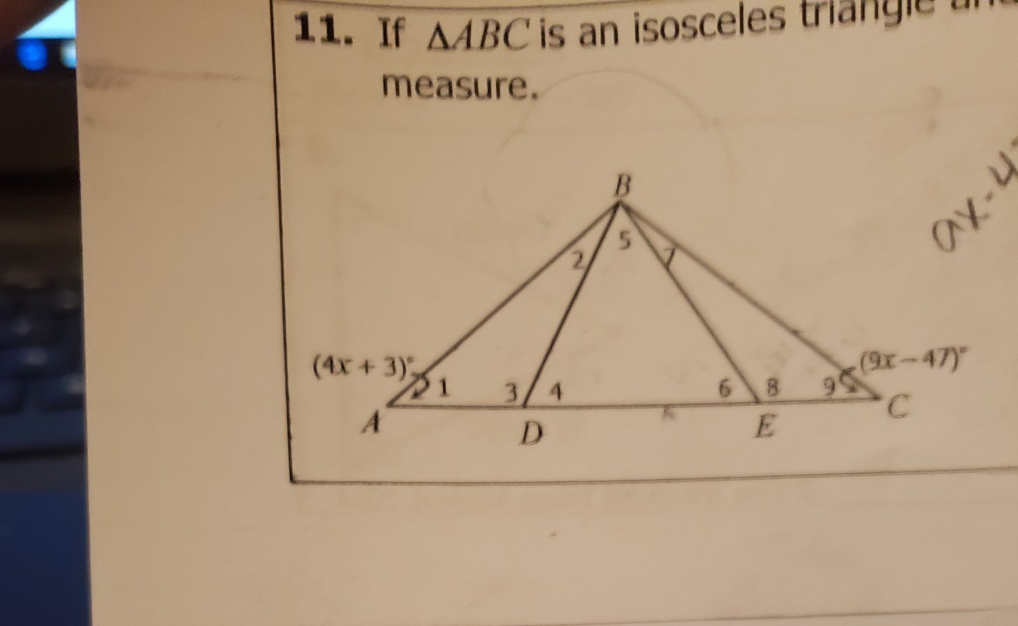 ∠1=∠9 (∵isosceles triangle)