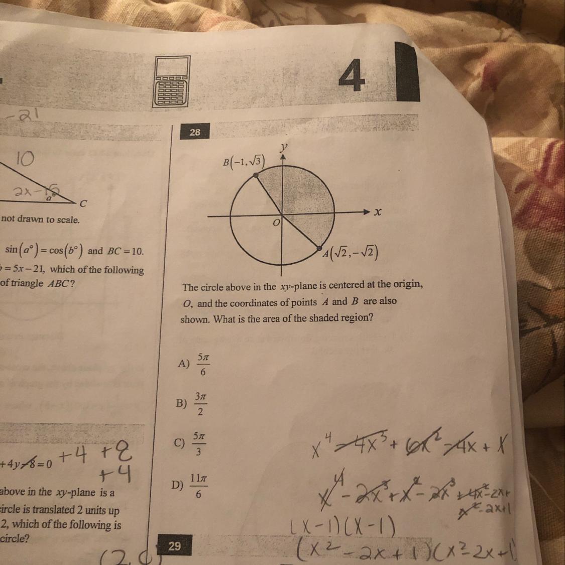 The central angle of the shaded region is
