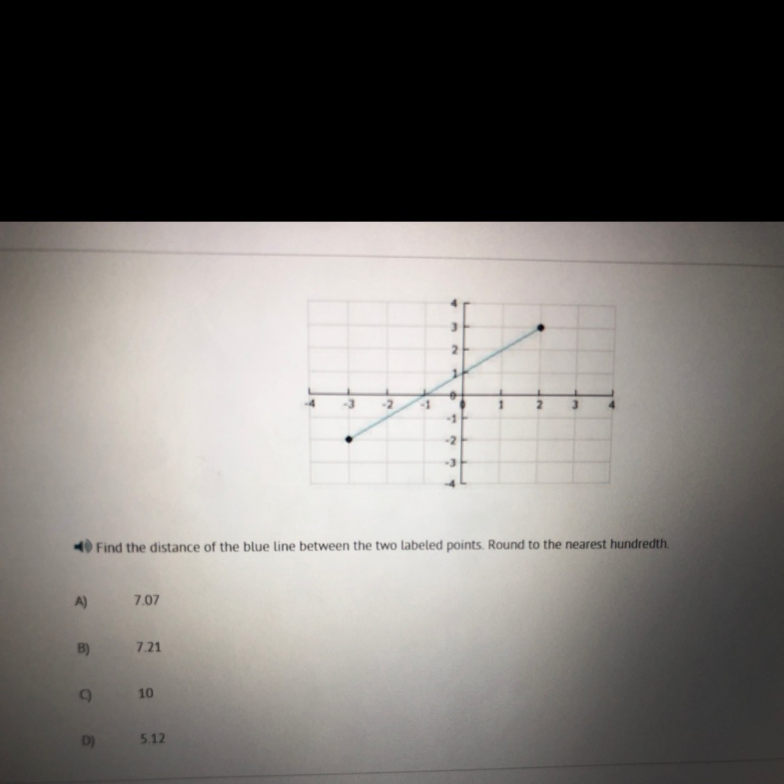 Find the distance of the blue line between the two labeled points.