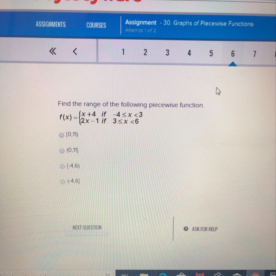 The range of the following piece wise function is 0 to 11