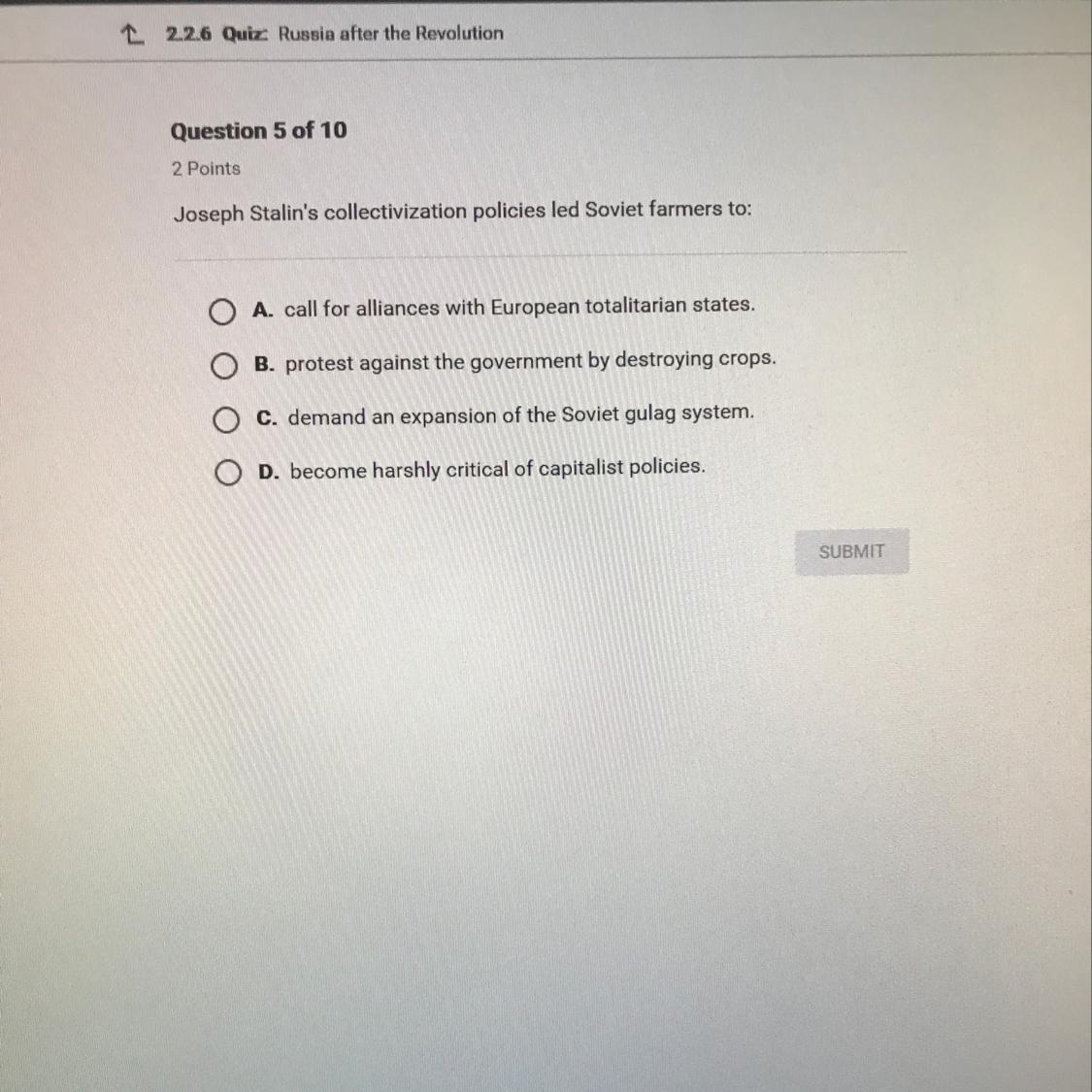 After a major grain crisis during 1928, Joseph Stalin established the system of state and collective farms of the Soviet Union, when he replaced the New Economic Policy (NEP) with collective agriculture, which grouped the peasants into collective farms (kolkhozes) ) and state farms (sovjoses).