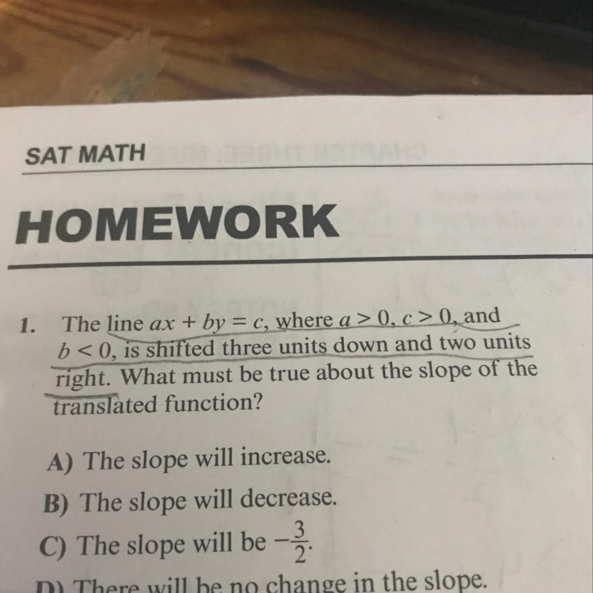 I think it's C) the slope will be negative 3 over 2