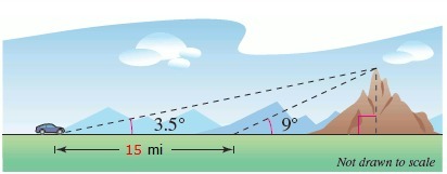 you drive 15 miles closer to the mountain, the angle of elevation is 9° (see figure). Approximate the height of the mountain. (Round your answer to one decimal place.)