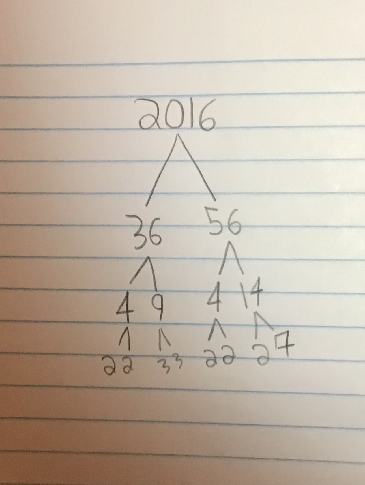 4. We continue to factor in this fashion (we deal with odd numbers by trying small prime factors)