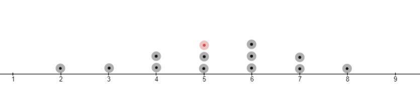 This is represented by dots above the axis. These dots stands for the frequency of each data value.