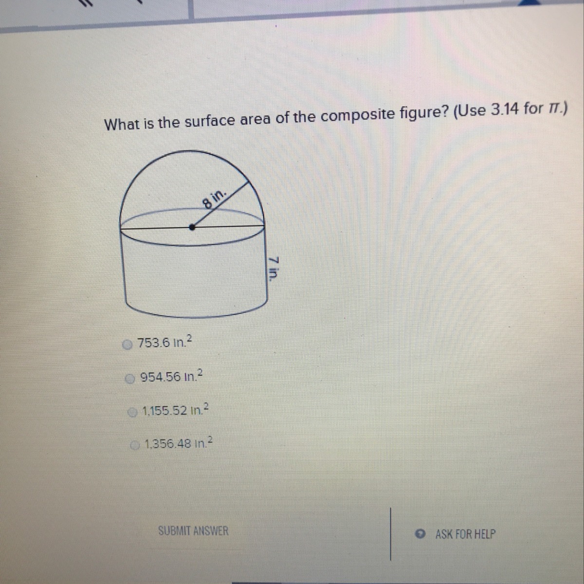 ... = 954.56 in² . . . . matches the 2nd selection