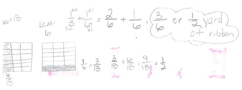 Jamal used 1/3 yard of ribbon to tie a package and 1/6 yard of ribbon to tie a bow. How many yards of ribbon did Jamal use?