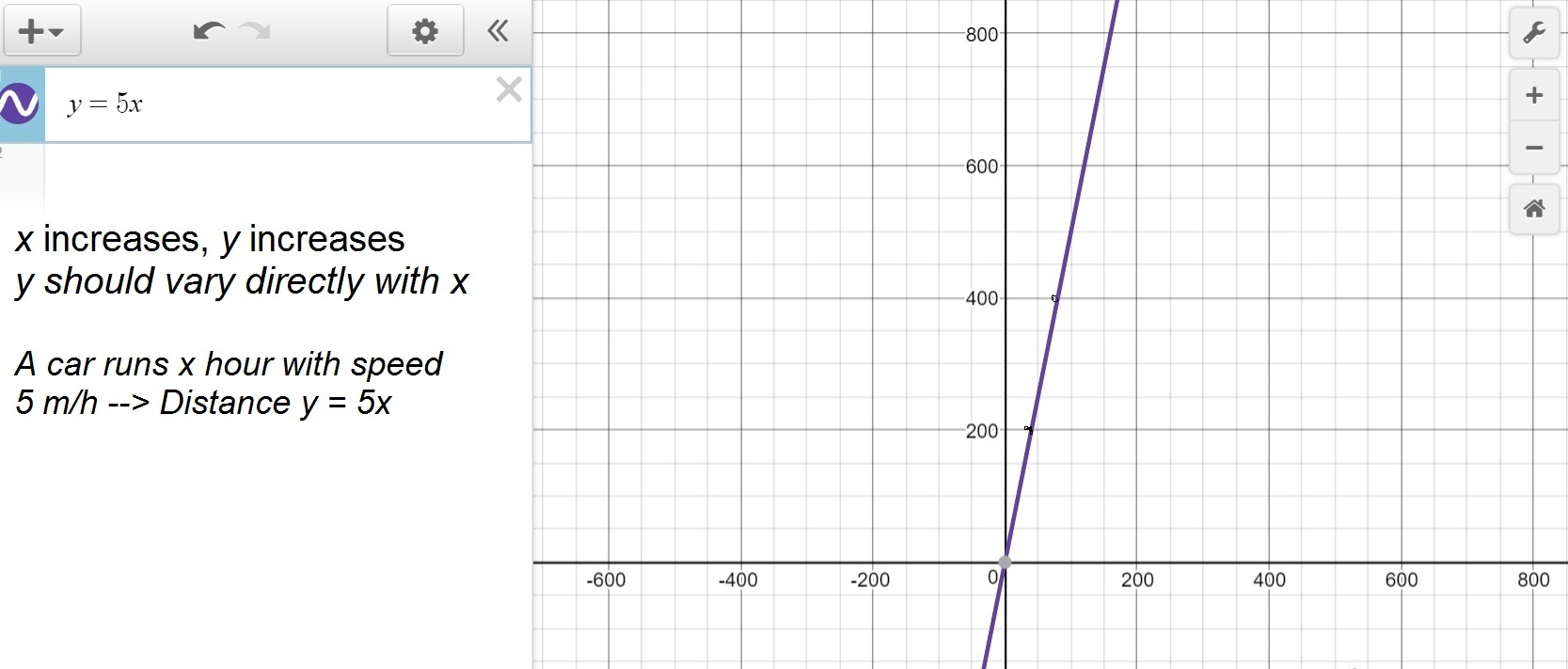 y = kx ------ > that means that when x increases, y increases or vice versa by the same factor k