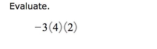 Hey! So to find out the answer..u have to use PEMDAS! So first is parenthesis. Multiply 4 and 2. Which gives u 8. Then multiply 8 by -3. Ur final answer should be -24. Hope this helped!