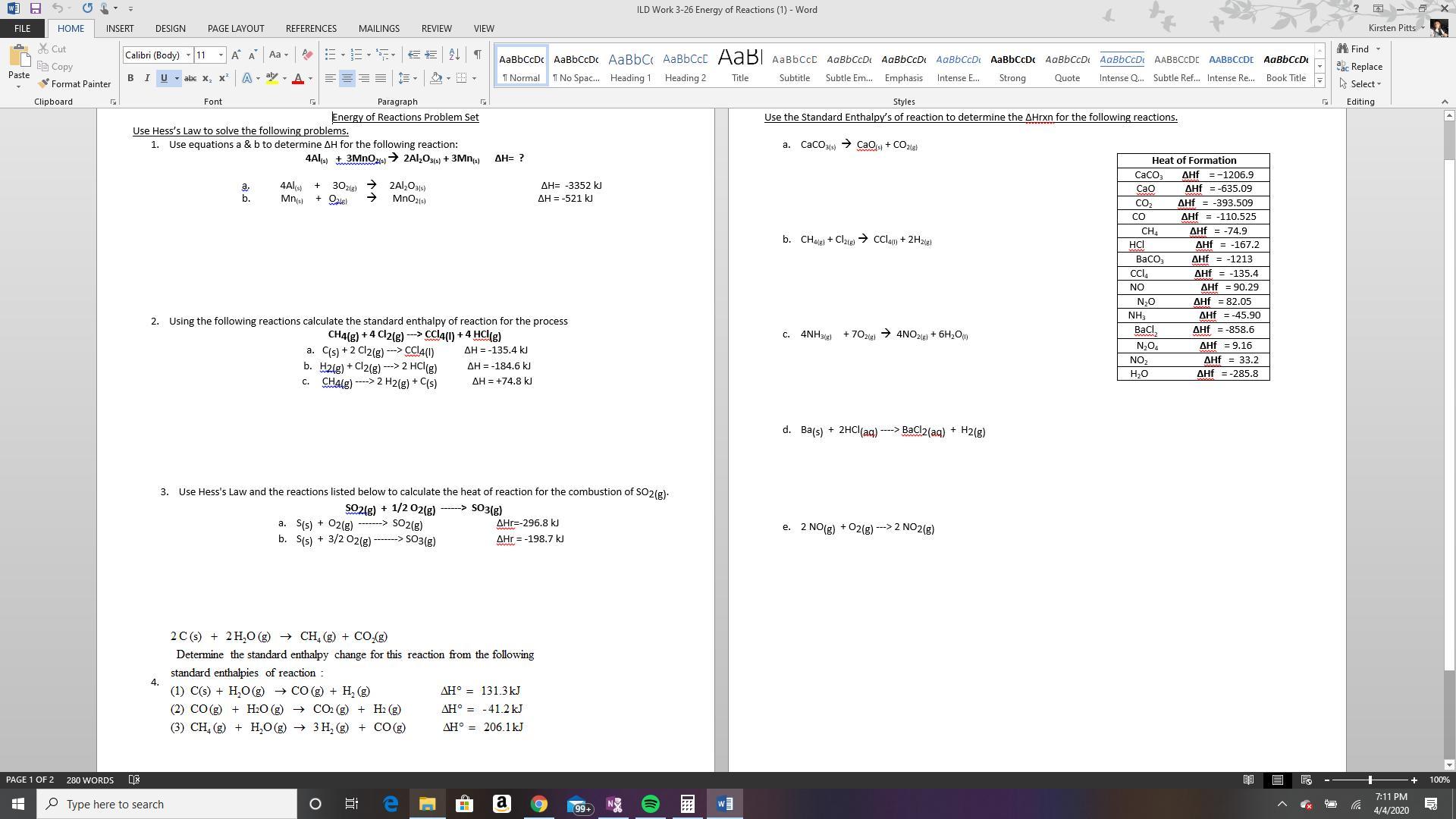 e. ΔH = 2(33.2 kJ) − 2(90.29 kJ)