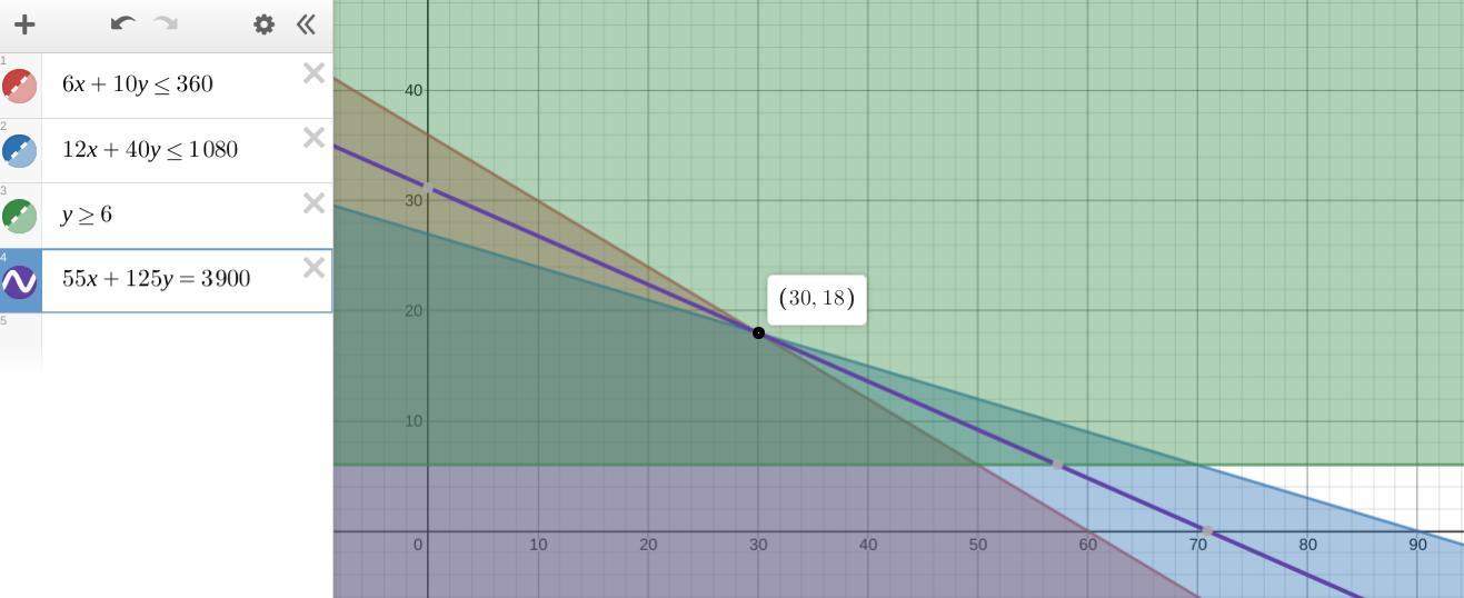 Maximize 55x +125y