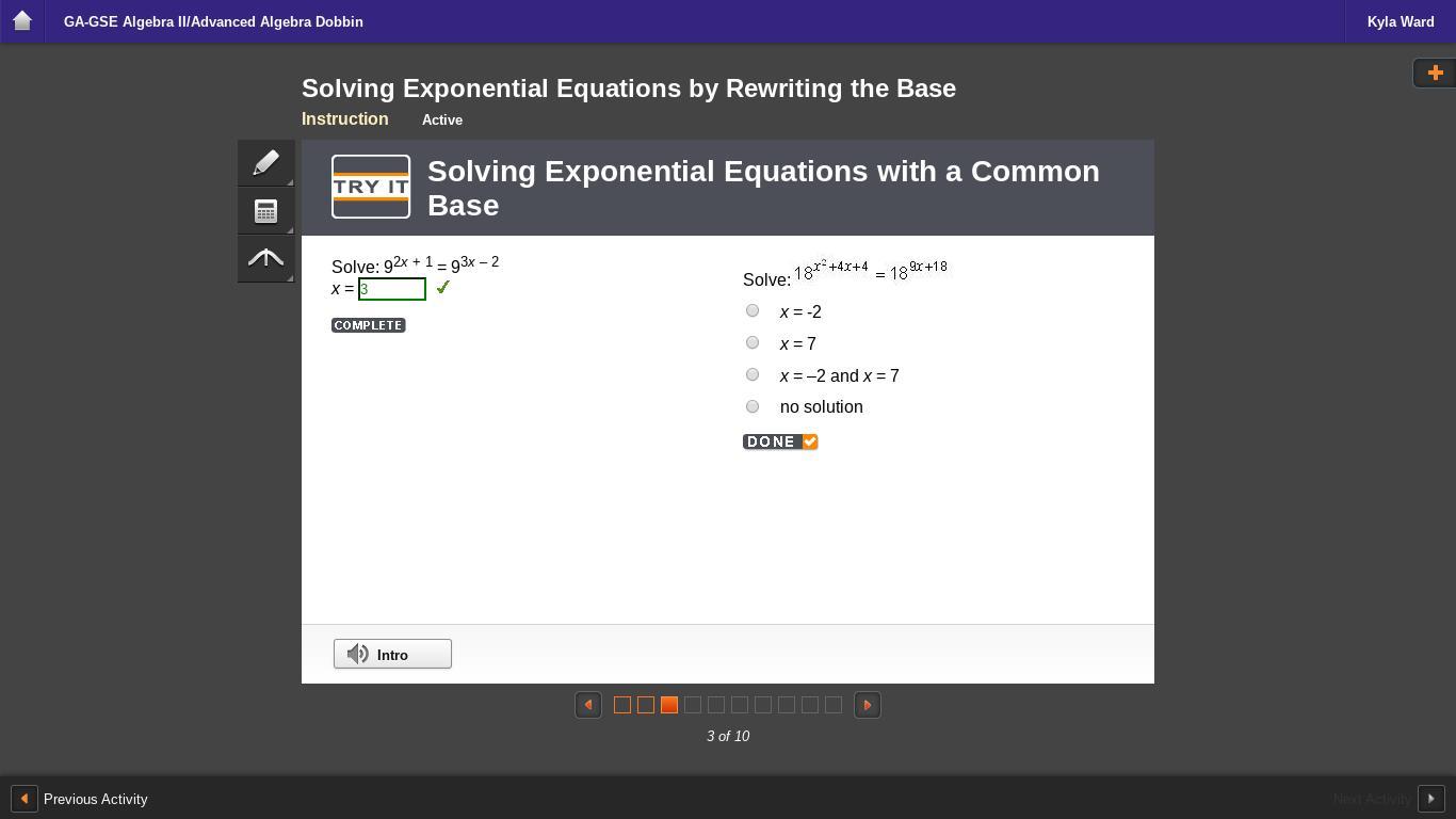 18^(x^2 + 4x + 4) = 18^(9x + 18)