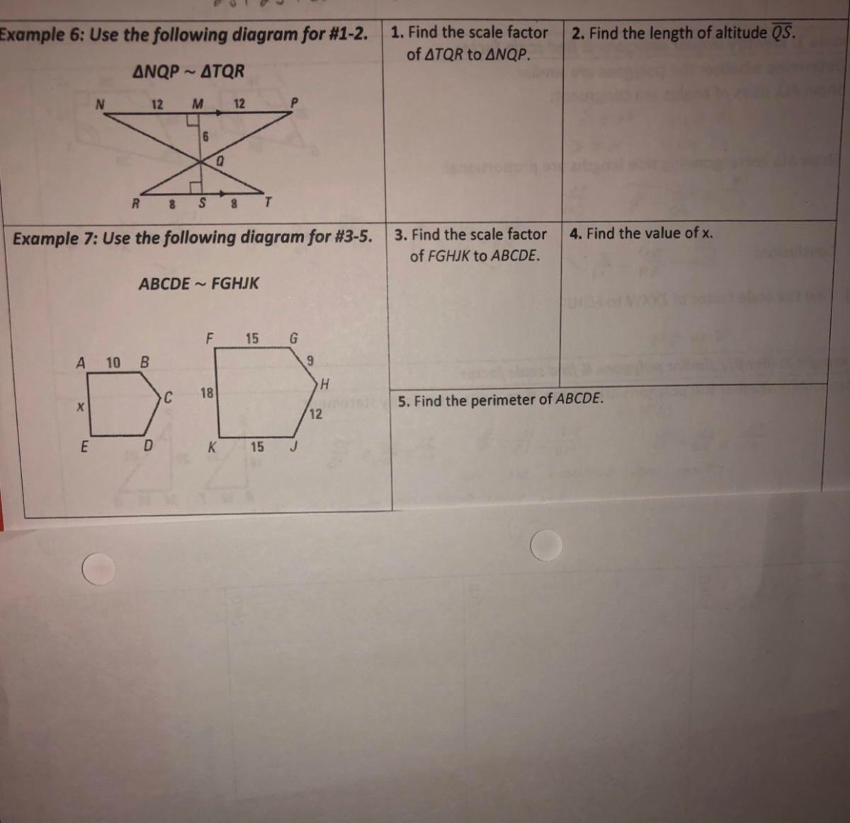 Part 1) Find the scale factor of triangle TQR to triangle NQP