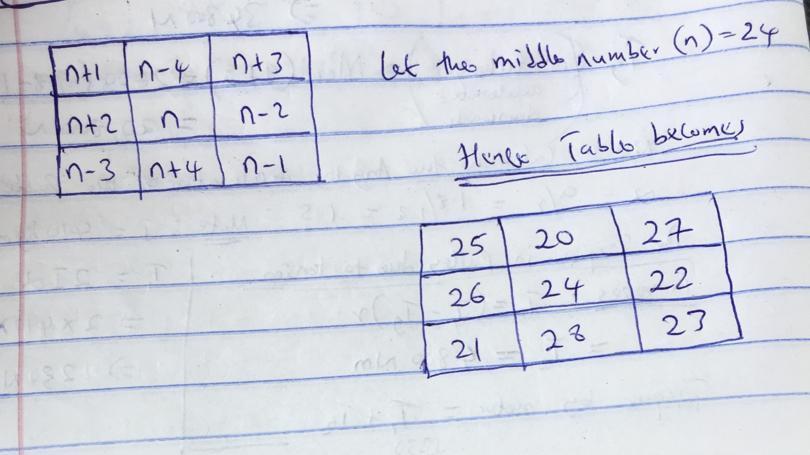 In order to achieve a 3 by 3 magic square table we will pick Nine consecutive numbers out of the ten numbers given and apply the format below
