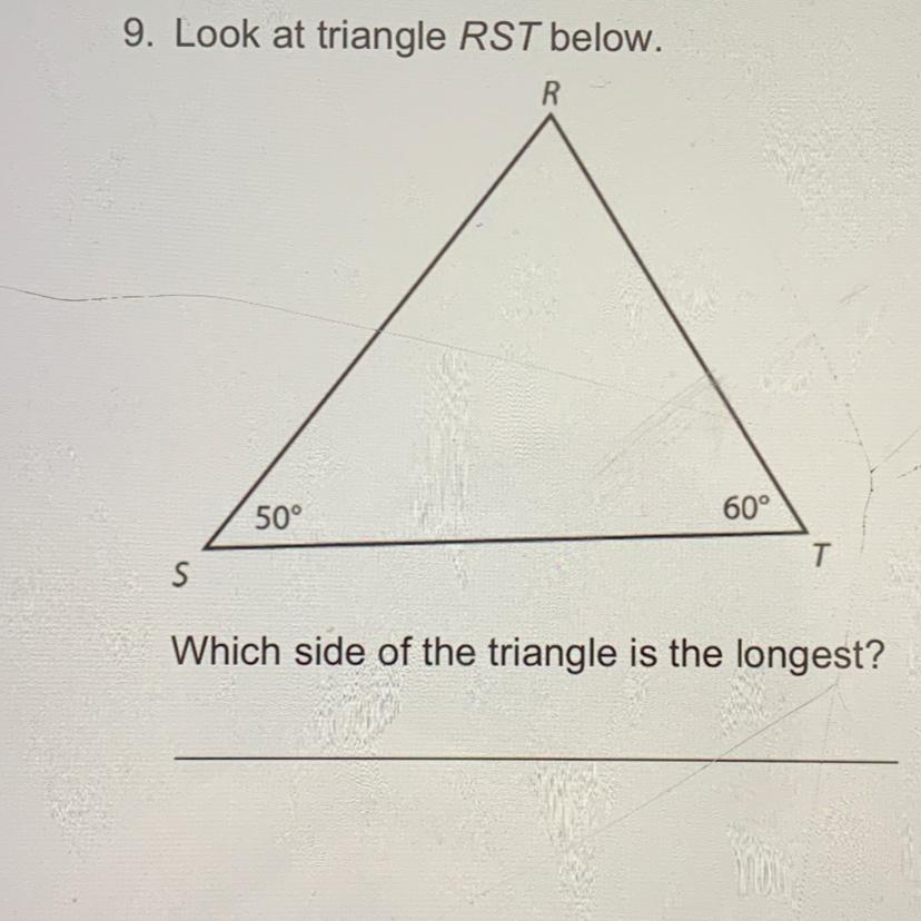 ∠R= 180°- (50°+60°)= 180° - 110° = 70°