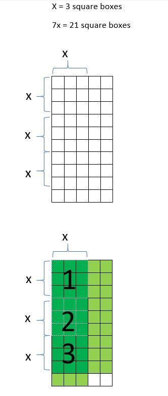 The area = (3x + 1)(x + 2) = 3 dark green squares + 7 light green squares + 2 Plain squares
