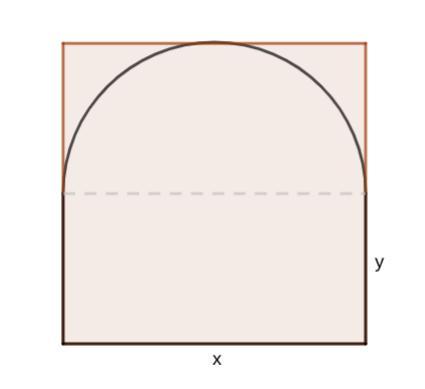 Let the rectangle dimensions be x and y. Assume that x represents the "short" side, so it is also the diameter of the semicircle. Then the perimeter is ...