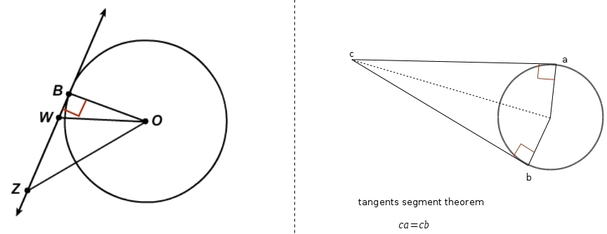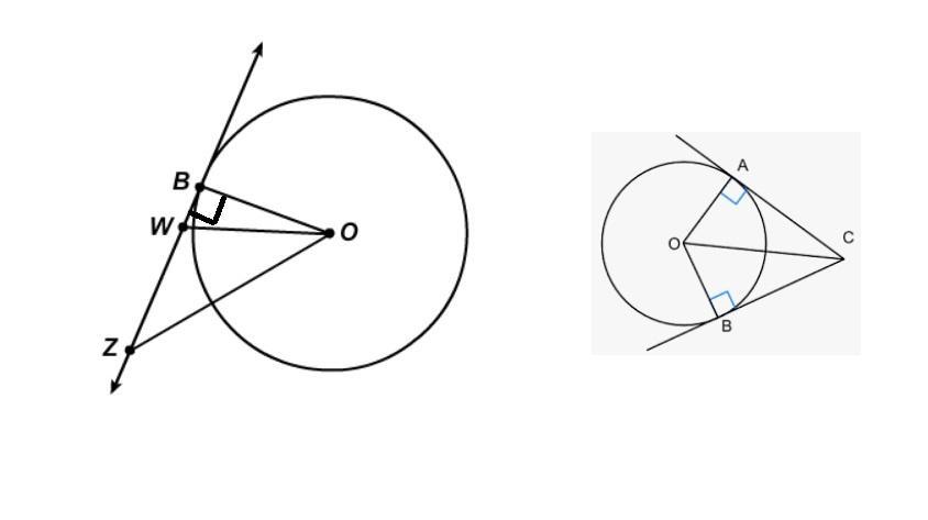 bear in mind that the "point of tangency", namely where the tangent touches the circle, with the radius of a circle, are always at a right-angle, therefore ∡OBZ is a right-angle.