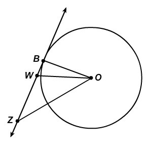 Since WZ is tangent to circle O at point B and OB is radius, therefore