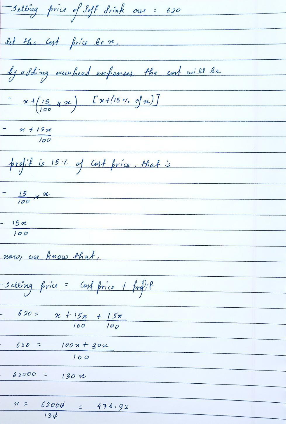 The Cost of one case of soda is ~