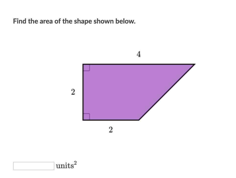 We can split the polygon into a square and triangle. The dimensions of the square are 2 and 2. The dimensions of the triangle are also 2 and 2.