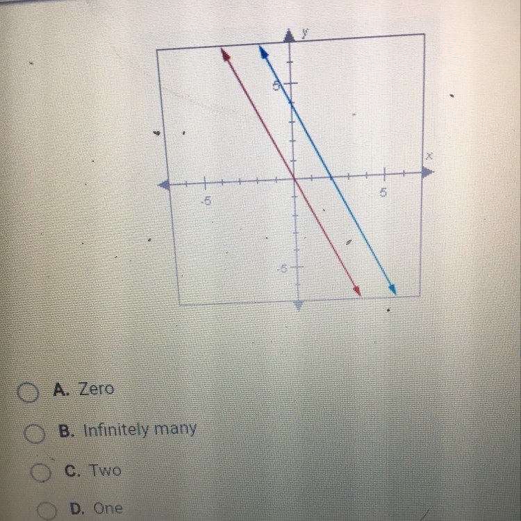 The two lines graphed below are parallel. How many solutions are there to the system of equations?