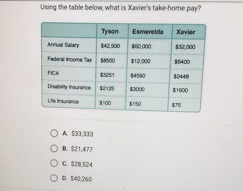 Deduction income of Xavier's = Federal income tax + FICA + Disability insurance + Life insurance