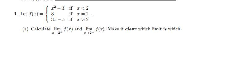 \displaystyle \lim_{x \to 2^{+}} f(x) = 1\\\\\displaystyle \lim_{x \to 2^{-}} f(x) = 1\\