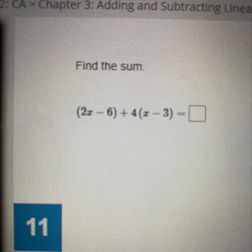 What is (2x - 6)+ 4(x - 3)