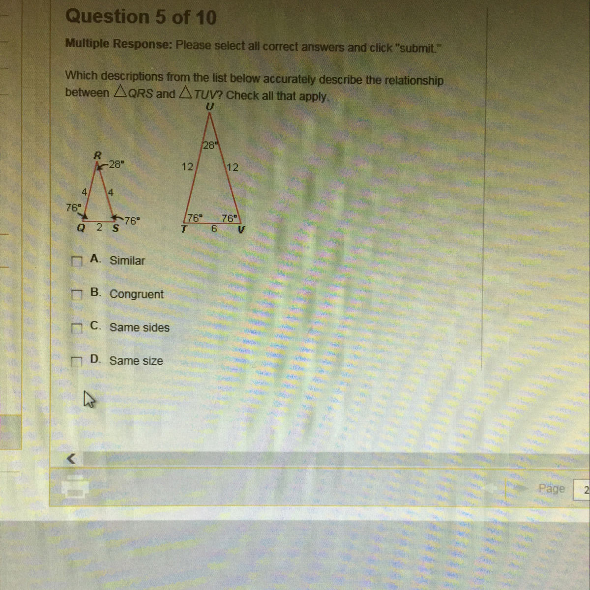 The question asks which x-value gives the same y-value for both equations, so if you need the ys to be equal, you can set both equations equal to each other, giving you 6x-16=3x-10. Now, solve for x. 6x-16=3x-10, subtract 3x and add 16, 3x=6, divide 3, x=2. Your answer is x=2.