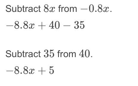 -0.8 x +40 - 8x -35 i need help ASAP