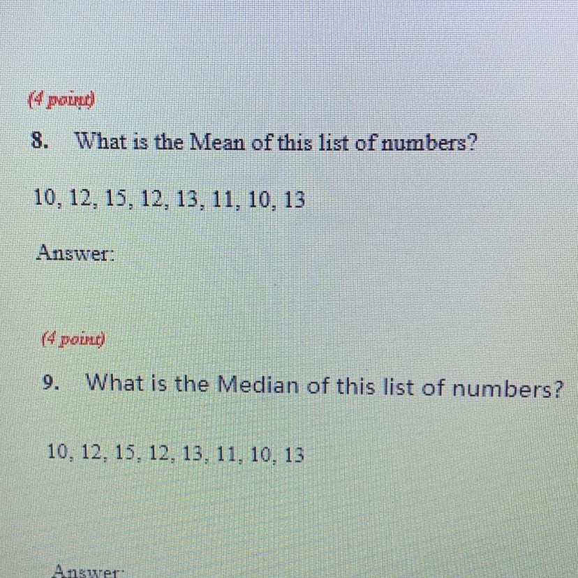 The mean is the average, add the numbers together and divide by the quantity of numbers: