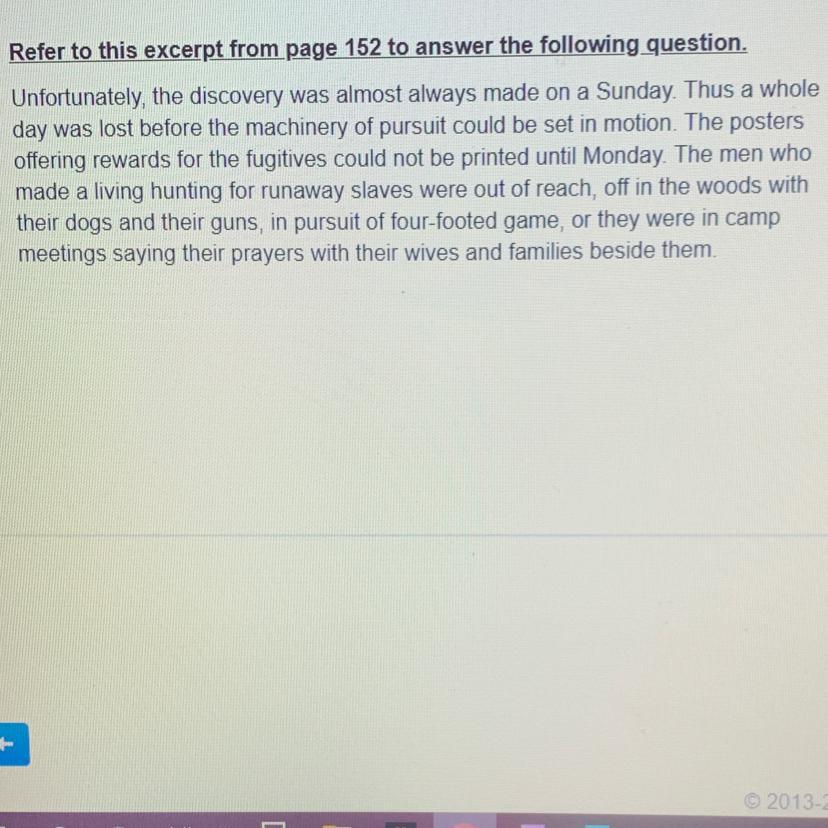Even the methods she implied to get hunters of slaves to be rewarded to not do so, were printed later than Sunday, again delaying the railroad to freedom for the slaves.