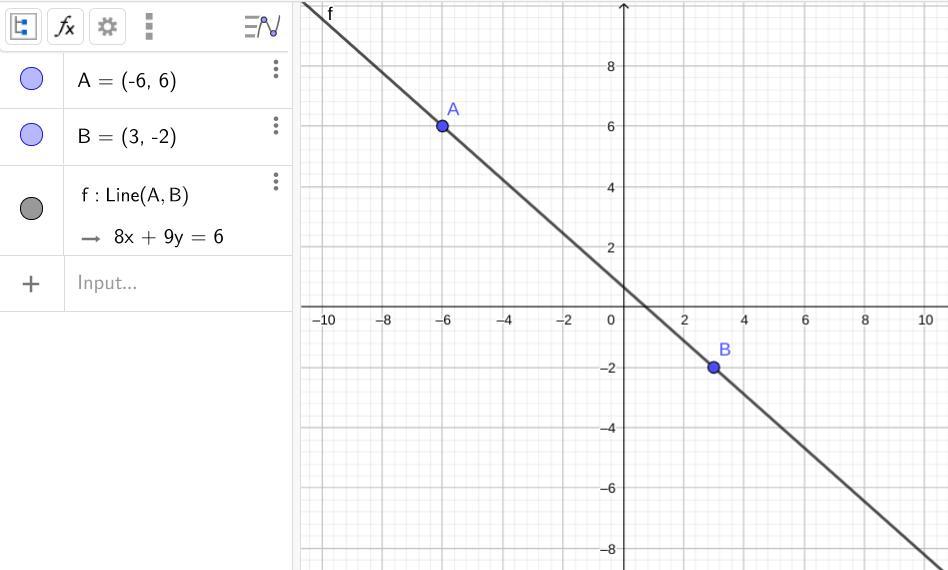 for point (3, -2), we want 8(3) +9(-2) = 6 . . . . true