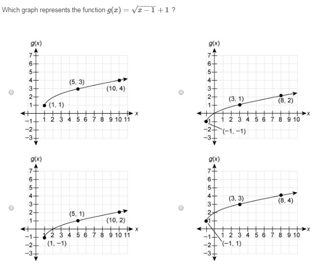 So, all points (1, 1), (5, 3) and (10, 4) satisfy the function,