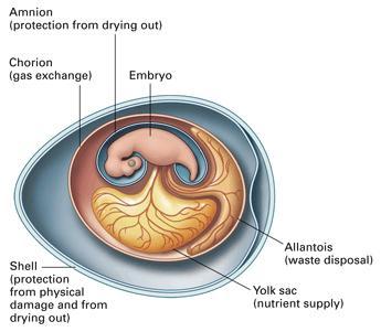 The amniotic egg has four layers. All of these layers are enclosed by a shell
