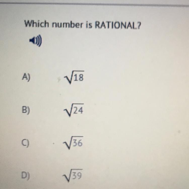 The square root of 36 is 6. 36 is a perfect square. 6 is a natural number and therefore is rational.