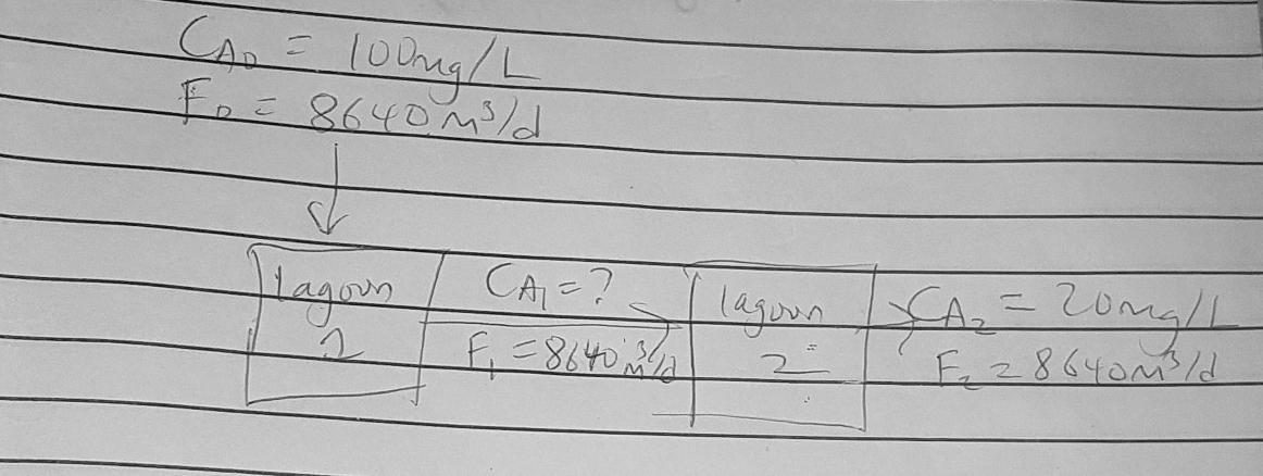 Since the volumes of the lagoon (reactors) are constant, F₀ = F₁ = F₂ = 8640 m³/day