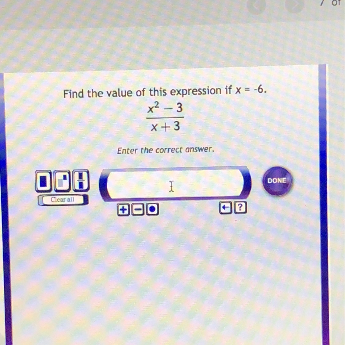 (x² - 3)/(x+3) = ((-6)² - 3)/((-6) + 3)