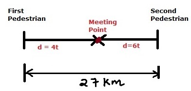 Distance between two pedestrians = 27 km.