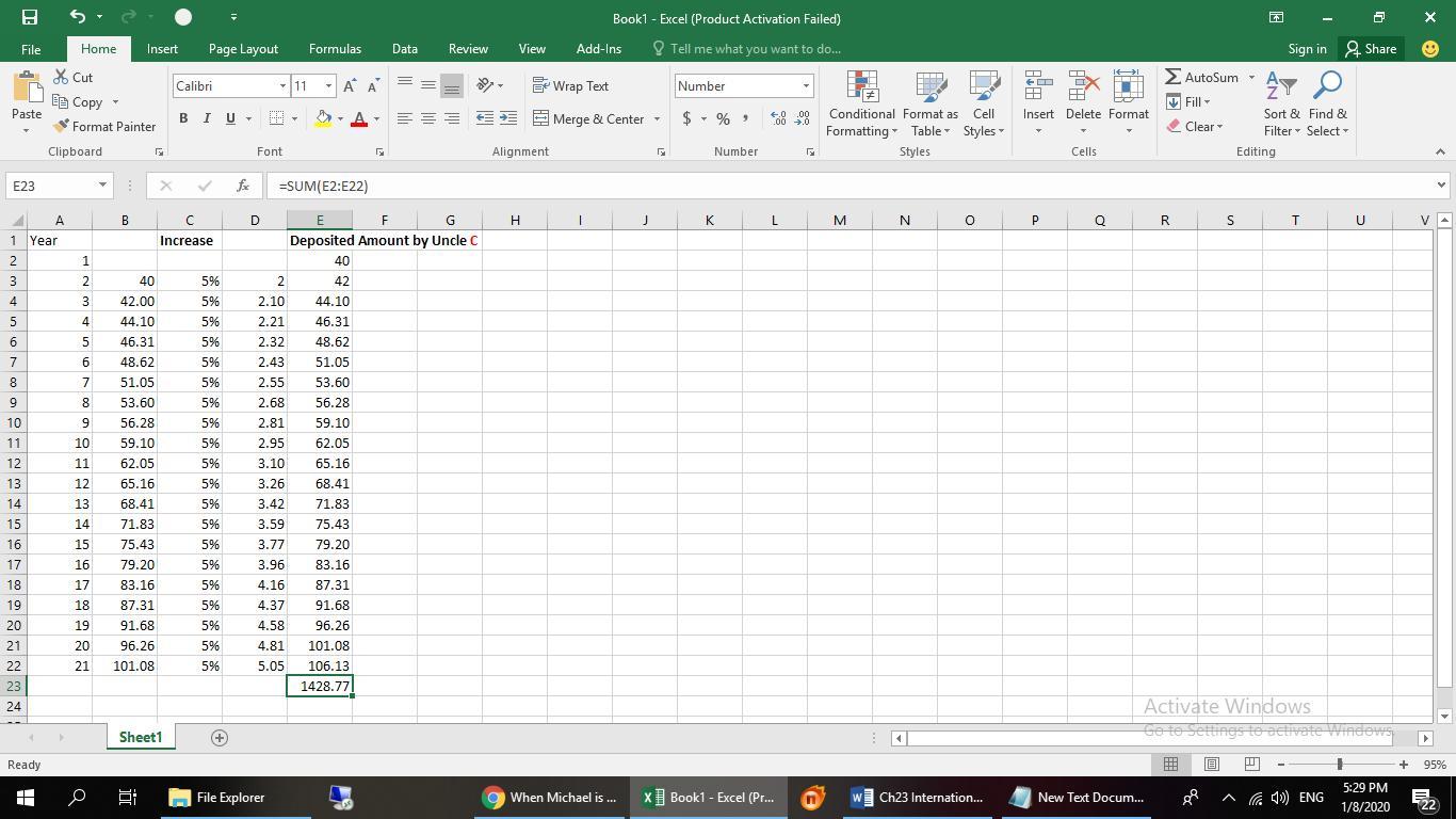 Uncle C = $40, and 5% more than the previous year. It means $40 x 1.05 = $42 in the 2nd year.